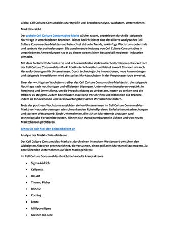 Global Cell Culture Consumables Marktgröße und Branchenanalyse, Wachstum, Unternehmen