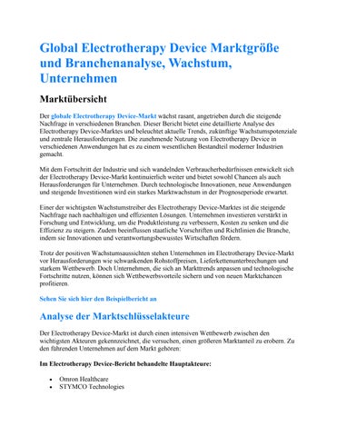 Global Electrotherapy Device Marktgröße und Branchenanalyse