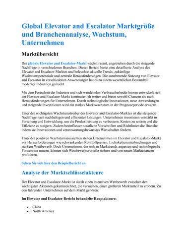 Global Elevator and Escalator Marktgröße und Branchenanalyse