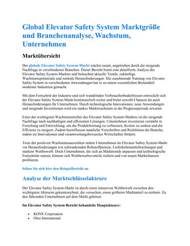 Global Elevator Safety System Marktgröße und Branchenanalyse