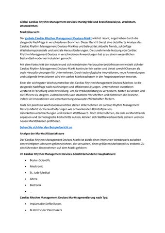 Global Cardiac Rhythm Management Devices Marktgröße und Branchenanalyse, Wachstum, Unternehmen
