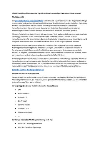 Global Cardiology Electrodes Marktgröße und Branchenanalyse, Wachstum, Unternehmen