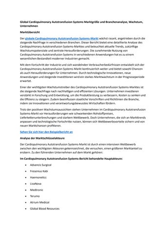 Global Cardiopulmonary Autotransfusion Systems Marktgröße und Branchenanalyse, Wachstum, Unternehmen