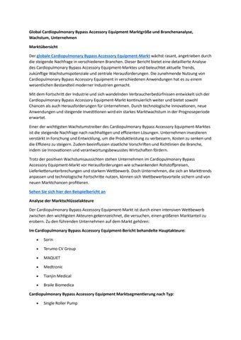 Global Cardiopulmonary Bypass Accessory Equipment Marktgröße und Branchenanalyse, Wachstum, Unterneh