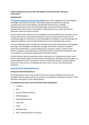 Global Cardiopulmonary Stress Tester Marktgröße und Branchenanalyse, Wachstum, Unternehmen