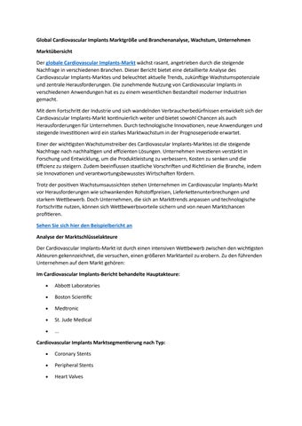 Global Cardiovascular Implants Marktgröße und Branchenanalyse, Wachstum, Unternehmen