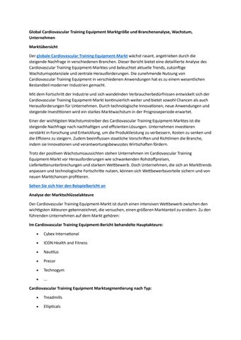 Global Cardiovascular Training Equipment Marktgröße und Branchenanalyse, Wachstum, Unternehmen