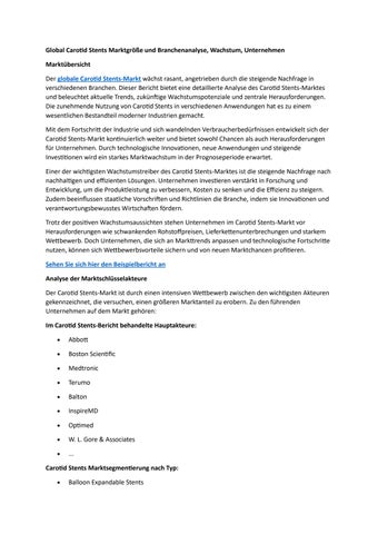 Global Carotid Stents Marktgröße und Branchenanalyse, Wachstum, Unternehmen