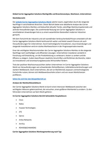 Global Carrier Aggregation Solutions Marktgröße und Branchenanalyse, Wachstum, Unternehmen