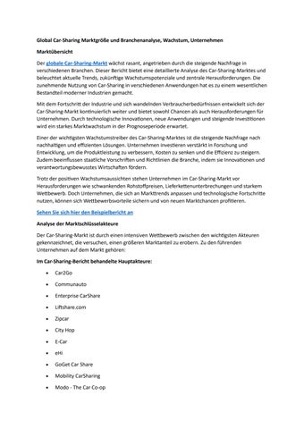 Global Car-Sharing Marktgröße und Branchenanalyse, Wachstum, Unternehmen