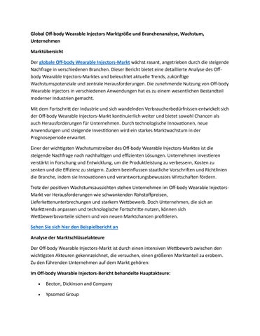 Global Off-body Wearable Injectors Marktgröße und Branchenanalyse, Wachstum, Unternehmen