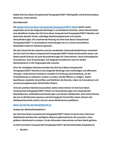 Global Oral Cone Beam Computerized Tomography?CBCT? Marktgröße und Branchenanalyse, Wachstum, Untern