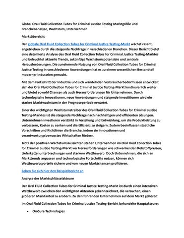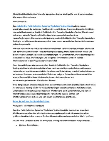 Global Oral Fluid Collection Tubes for Workplace Testing Marktgröße und Branchenanalyse, Wachstum, U