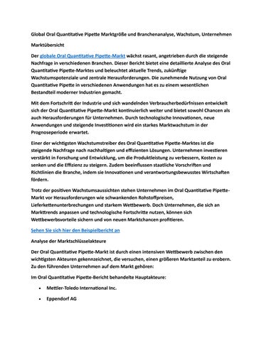 Global Oral Quantitative Pipette Marktgröße und Branchenanalyse, Wachstum, Unternehmen