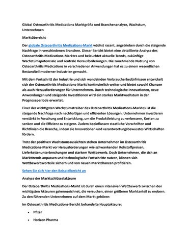 Global Osteoarthritis Medications Marktgröße und Branchenanalyse, Wachstum, Unternehmen