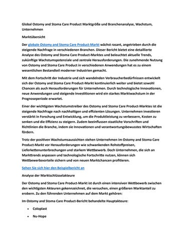 Global Ostomy and Stoma Care Product Marktgröße und Branchenanalyse, Wachstum, Unternehmen
