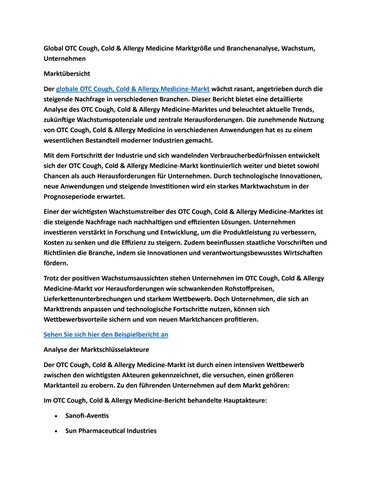 Global OTC Cough, Cold & Allergy Medicine Marktgröße und Branchenanalyse, Wachstum, Unternehmen