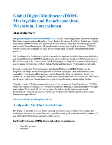 Global Digital Multimeter (DMM) Marktgröße und Branchenanalyse, Wachstum, Unternehmen