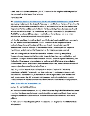 Global Non-Alcoholic Steatohepatitis (NASH) Therapeutics and Diagnostics Marktgröße und Branchenanal