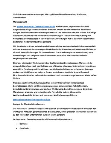 Global Noncontact Dermatoscopes Marktgröße und Branchenanalyse, Wachstum, Unternehmen