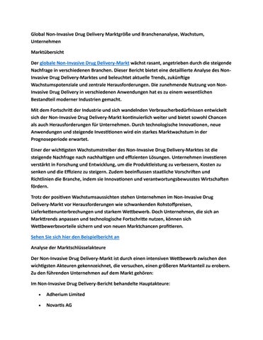 Global Non-Invasive Drug Delivery Marktgröße und Branchenanalyse, Wachstum, Unternehmen