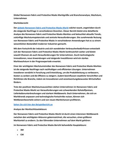 Global Nonwoven Fabric and Protective Masks Marktgröße und Branchenanalyse, Wachstum, Unternehmen