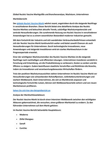 Global Nucleic Vaccine Marktgröße und Branchenanalyse, Wachstum, Unternehmen