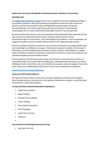 Global Caps and Closures Marktgröße und Branchenanalyse, Wachstum, Unternehmen