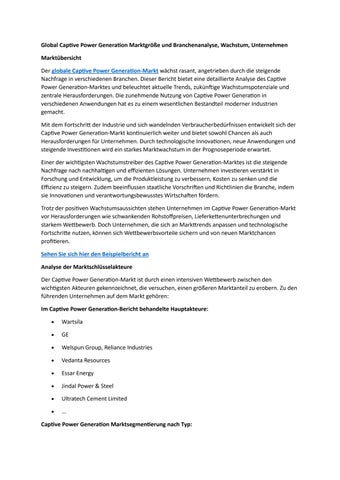 Global Captive Power Generation Marktgröße und Branchenanalyse, Wachstum, Unternehmen