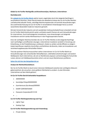 Global Car Air Purifier Marktgröße und Branchenanalyse, Wachstum, Unternehmen