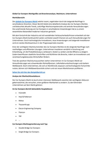 Global Car Dumpers Marktgröße und Branchenanalyse, Wachstum, Unternehmen