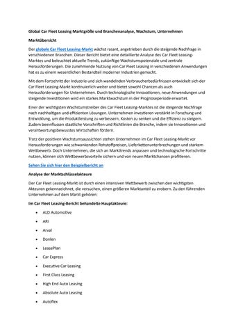 Global Car Fleet Leasing Marktgröße und Branchenanalyse, Wachstum, Unternehmen