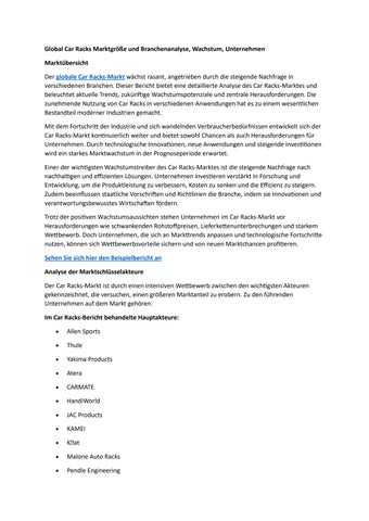 Global Car Racks Marktgröße und Branchenanalyse, Wachstum, Unternehmen