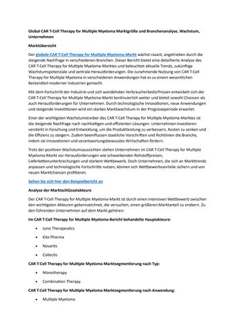 Global CAR T-Cell Therapy for Multiple Myeloma Marktgröße und Branchenanalyse, Wachstum, Unternehmen