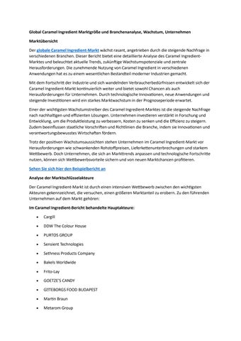Global Caramel Ingredient Marktgröße und Branchenanalyse, Wachstum, Unternehmen