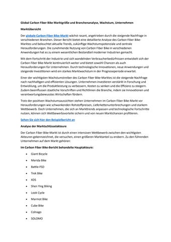 Global Carbon Fiber Bike Marktgröße und Branchenanalyse, Wachstum, Unternehmen