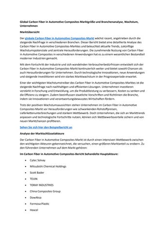 Global Carbon Fiber in Automotive Composites Marktgröße und Branchenanalyse, Wachstum, Unternehmen