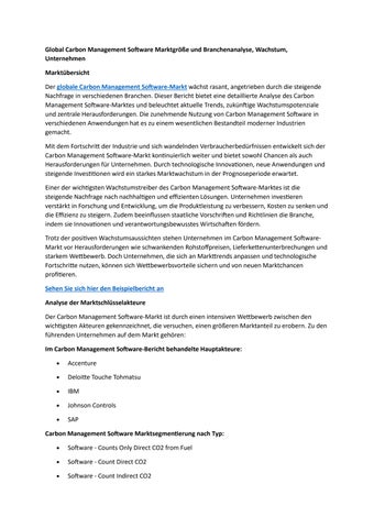 Global Carbon Management Software Marktgröße und Branchenanalyse, Wachstum, Unternehmen