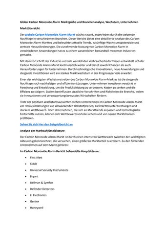 Global Carbon Monoxide Alarm Marktgröße und Branchenanalyse, Wachstum, Unternehmen