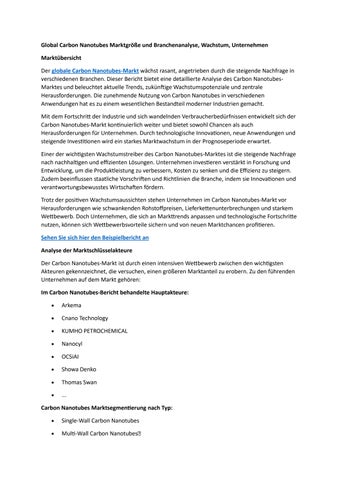 Global Carbon Nanotubes Marktgröße und Branchenanalyse, Wachstum, Unternehmen
