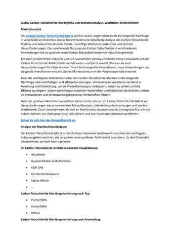 Global Carbon Tetrachloride Marktgröße und Branchenanalyse, Wachstum, Unternehmen