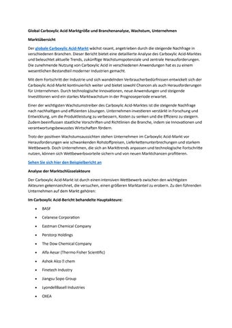 Global Carboxylic Acid Marktgröße und Branchenanalyse, Wachstum, Unternehmen