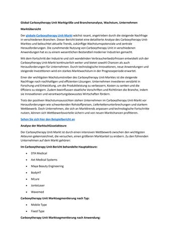 Global Carboxytherapy Unit Marktgröße und Branchenanalyse, Wachstum, Unternehmen