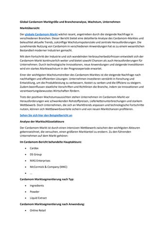 Global Cardamom Marktgröße und Branchenanalyse, Wachstum, Unternehmen