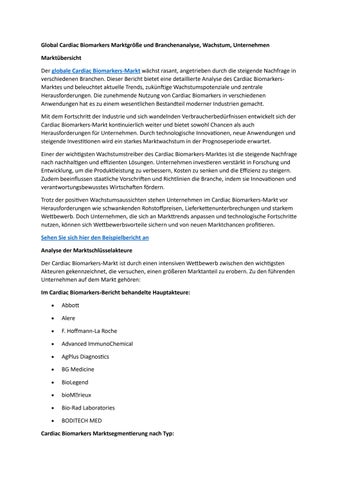 Global Cardiac Biomarkers Marktgröße und Branchenanalyse, Wachstum, Unternehmen
