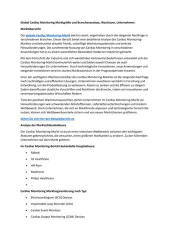 Global Cardiac Monitoring Marktgröße und Branchenanalyse, Wachstum, Unternehmen
