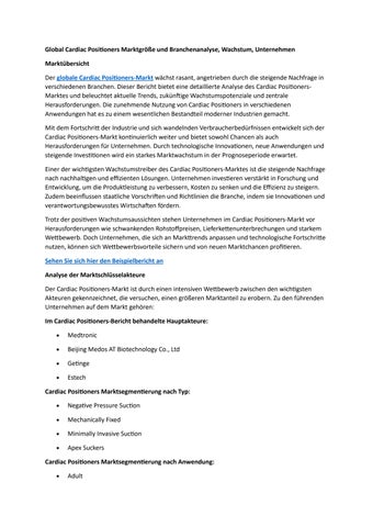 Global Cardiac Positioners Marktgröße und Branchenanalyse, Wachstum, Unternehmen