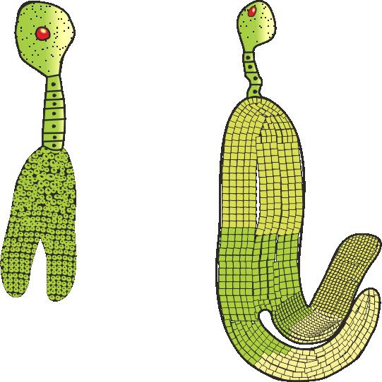 cent of angiosperms and in the remaining at three-celled stage (one vegetative cell and two male gametes). After reaching the stigma, the intine grows out through a germ pore into a slender pollen tube. The generative cell divides into two male gametes. The lifespan of male gametophytes is very short as compared to that of the sporophyte.
