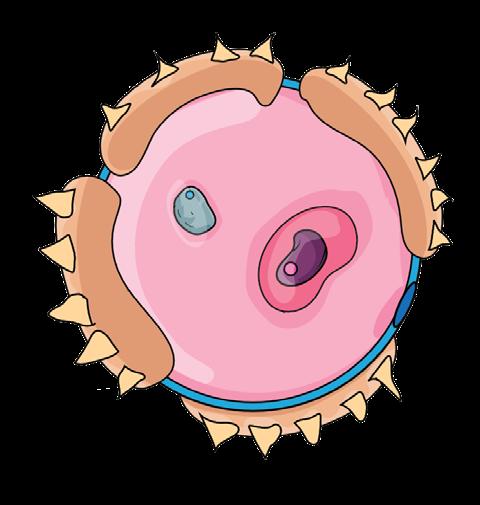 central body of tissue, the nucellus, surrounded by one o r two protective envelops called integuments . Each ovule is attached to the placenta by a small stalk called the funiculus. The place of attachment of the stalk with the main body of the ovule is called the hilum (which represents the junction between the ovule and funicle). In an inverted ovule, the funicle fuses with the main body of the ovule, forming a sort of ridge, known as raphe.