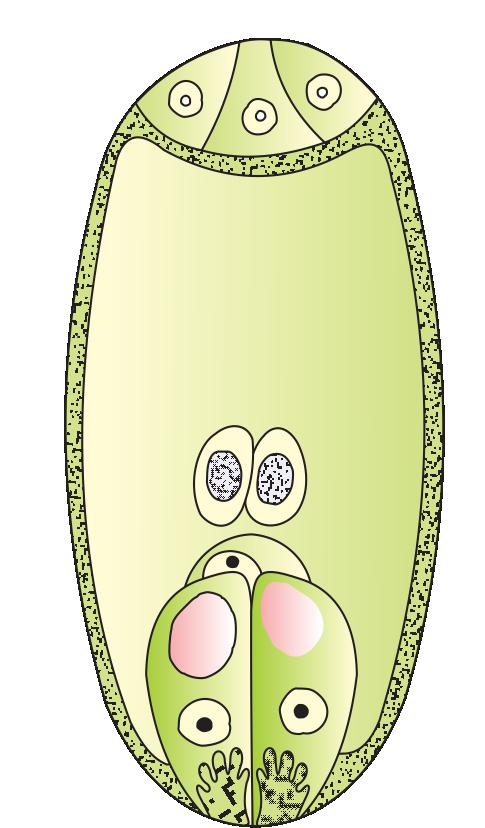 A large oval structure lying embedded in the nucellus towards the micropylar end is the embryo sac or female gametophyte (Fig. 1.8). This makes the most important part of the mature ovule. It is the site of fertilisation, and later on, it bears the embryo. An ovule generally has one embryo sac formed from a megaspore.
